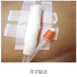 10、氣膠帶以井字形貼法固定在大腿內側(女病人) 或下腹部(男病人),每天須更換黏貼部位,防止長期黏貼或導管壓迫,造成皮膚損傷。